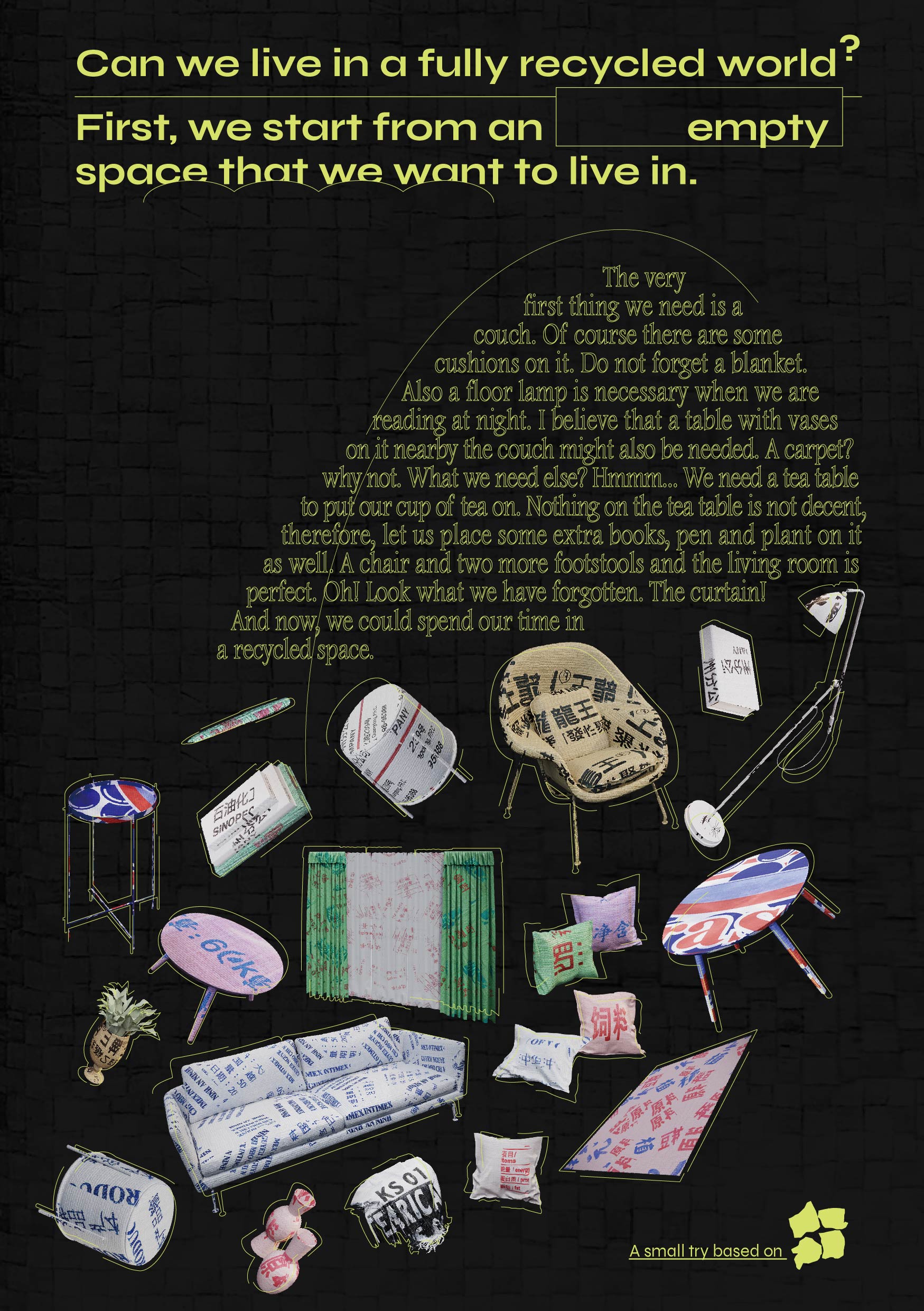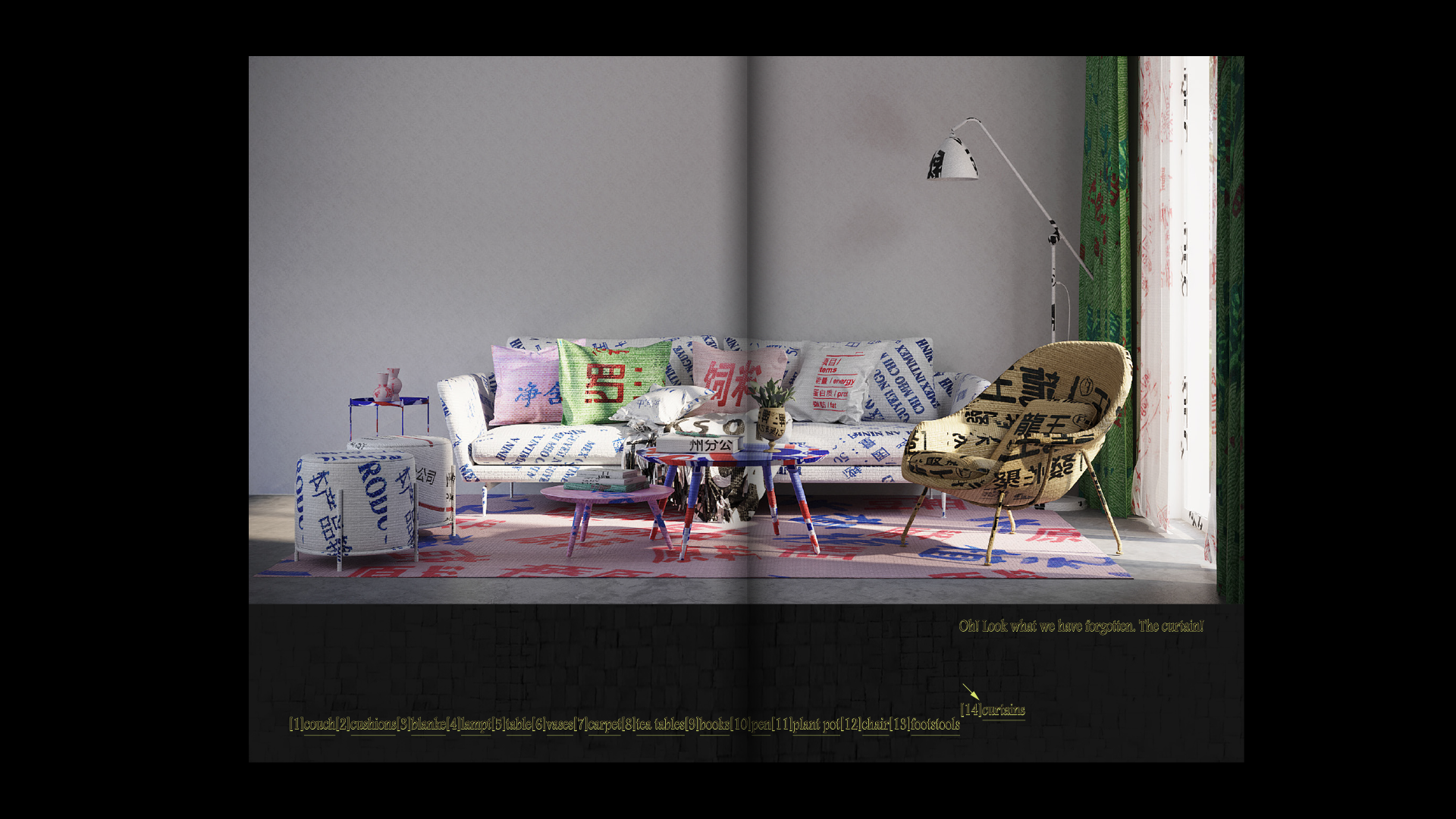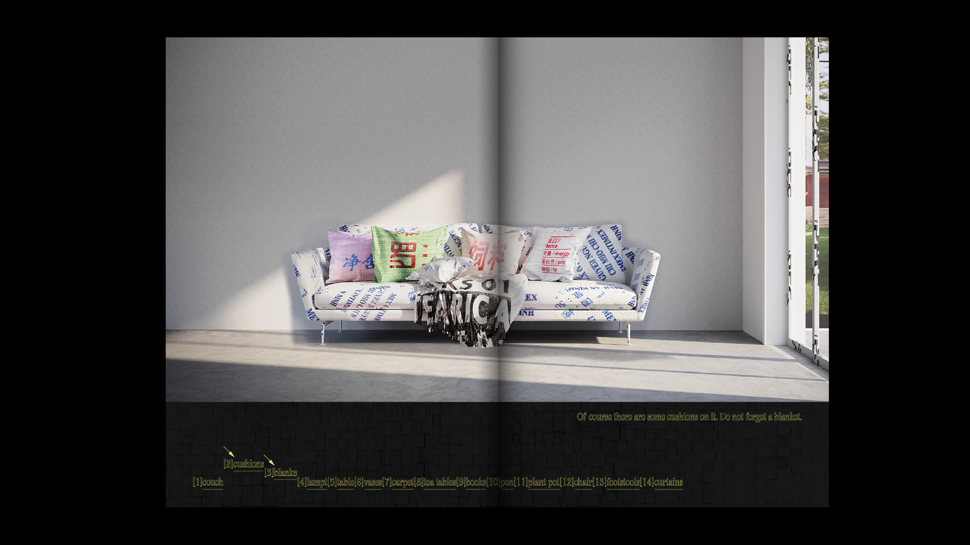 No one will pay attention to corners, they are the intersection of lines, the furthest point of spaces. I collected quotes from movies I watched during quarantine, and gave a quote to every corner I encountered. Corners are speaking out loud the most well-known quotes and shined as the main character eventually.